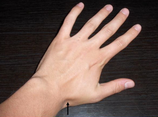 ▼解剖鼻煙盒:當手掌用力伸展時會出現的凹槽,在人類演化過程中這個部位逐漸不重要而被取代,不過看名字可以推測出以前的用途到底是什麼吧!