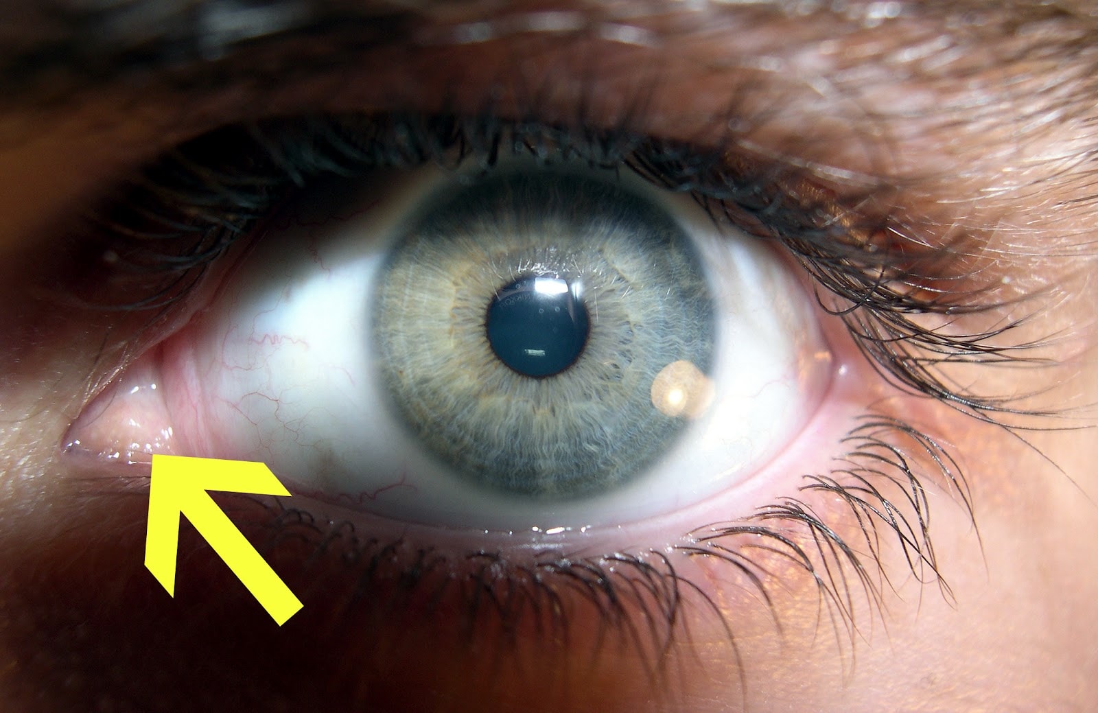 ▼第三眼瞼:能夠保持眼睛濕潤,藉此來保護眼睛,並讓眼睛有著良好的視力,人類已經演化至只剩下一點,不過在一些鳥類和爬行類動物的眼睛中還是可以發現類似的薄膜。