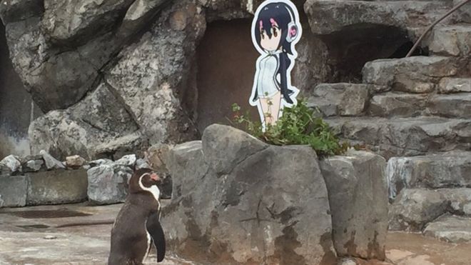▼大家也很好奇,如此「高齡」的企鵝怎麼會對一個紙片人產生感情,原來,葡萄君在愛情里受過傷害,被帶過「綠帽子」。通常洪堡企鵝一生只有一個配偶,葡萄君在2007與妻子一起搬到了東武動物園,沒想到三年後妻子竟然「出軌」,和另外一位年輕的雄性企鵝走在了一起,還生下了孩子。之後,受到打擊的葡萄君就越來越消沉,直到芙露露的展板出現之後,葡萄君好像找到了「第二春」一樣,重拾生活的信心。