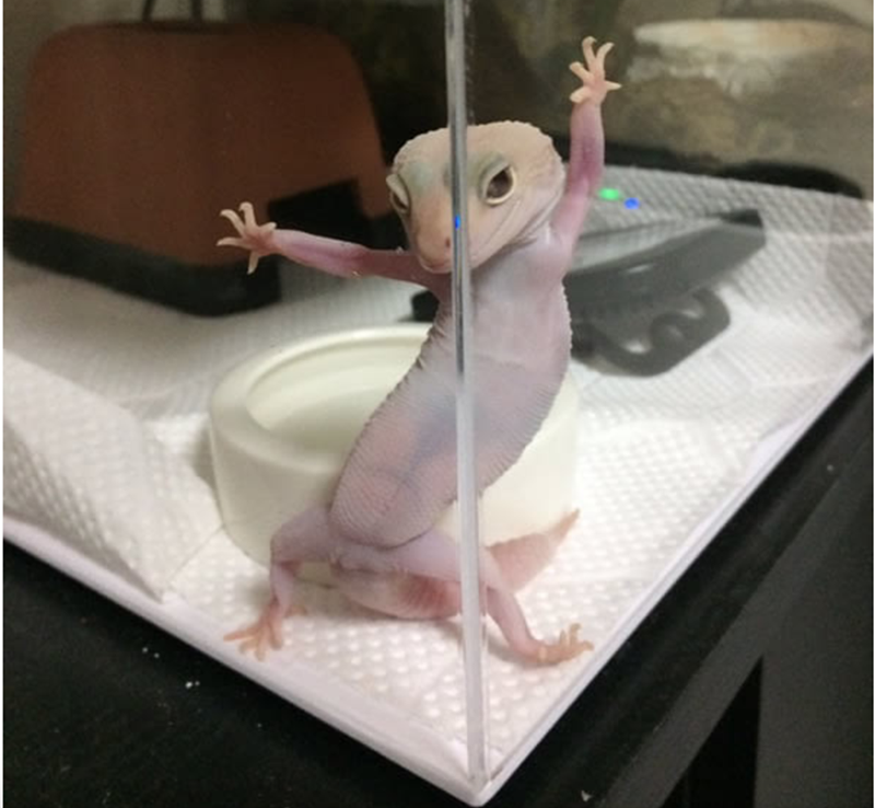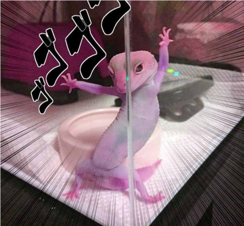 2017年10月16日前幾天,日本一名網友回家後,發現自家守宮狀態不對。牠不像平時一樣乖乖趴著,而是後腿站立,前爪伸開,擺好姿勢就像在跳舞。主人忍不住發笑,拍攝下來PO到網路上,網友們都笑噴了。