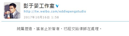 ▼由於消息太過於勁爆,彭于晏的官方微博「彭于晏工作室」在收到消息之後第一時間出來滅火,闢謠之餘也表示這件事已經交給律師處理。