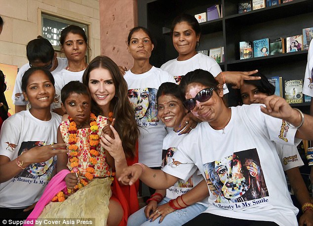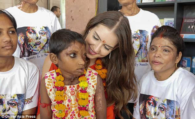 ▼Julie熱愛學習,但她被硫酸燒傷,家境貧困,只能在最普通的學校上學。最近,Chhanv基金會組織了一次活動,她遇到了英國環球小姐Anna Burdzy。