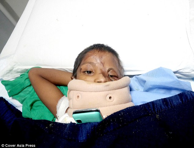 ▼幾個月前,印度專門協助硫酸受害女性的慈善團體「Chhanv基金」會知道了Julie的經歷,願意為她提供緊急援助和醫療服務。現在她已經做了一次手術,左臉與肩膀上的皮膚分開,能夠轉動頭部了。