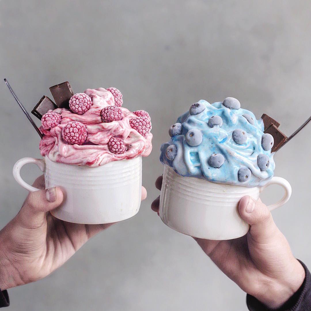 ▼淡藍色的優格奶昔,加上冷凍莓果,配色就很協調。