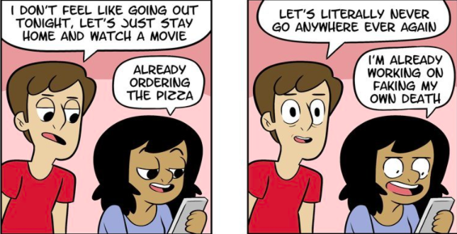 超級親近關係,每天都一起賴在家:「我們乾脆不再出去了。」「我已經在裝死了。」