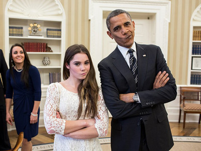 ▼之後她還與當時的美國總統歐巴馬拍噘嘴照,被外界稱為「體操女神」。不過她去年時就離開體壇,轉戰演藝圈了。年僅20的McKayla長得漂亮,又有人氣,進入演藝圈後發展得也很好。