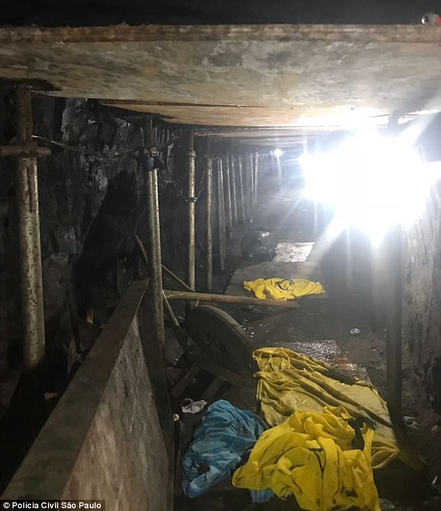 ▼據外媒報導,這些竊賊4個月前在聖保羅南區租了一棟住宅,然後開挖。他們挖的隧道很寬敞,空間足以讓成年人站起身,四周還用木製支架、鋼筋做支撐,大概花費了400萬巴西幣(約新台幣3900萬元)才完成。