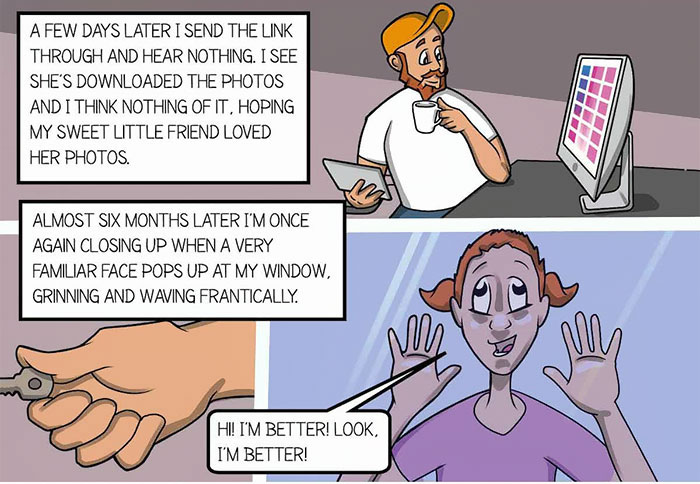 2017年10月24日一位澳洲攝影師在網路上分享了自己的故事。與所有人一樣,他很不喜歡那種在下班前幾分鐘進店的客人,但7年前發生的事,卻改變了他的人生。