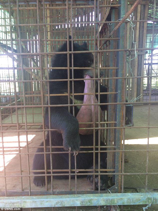 牠很痛苦!亞洲幼熊「舌頭遭到感染變成3公斤重」,僧侶發現後馬上營救!