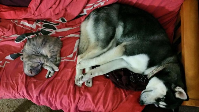 ▼主人很無奈,但還是捨不得把牠叫起來。