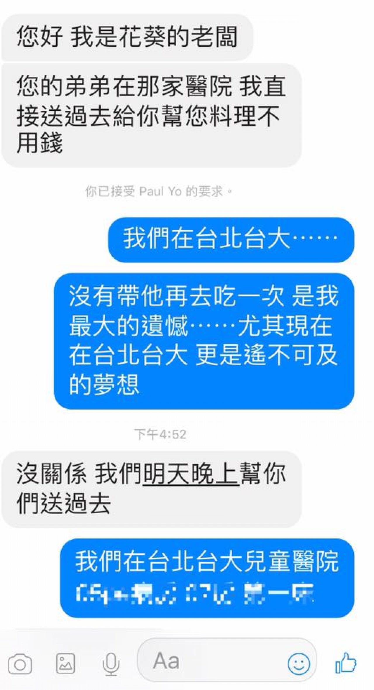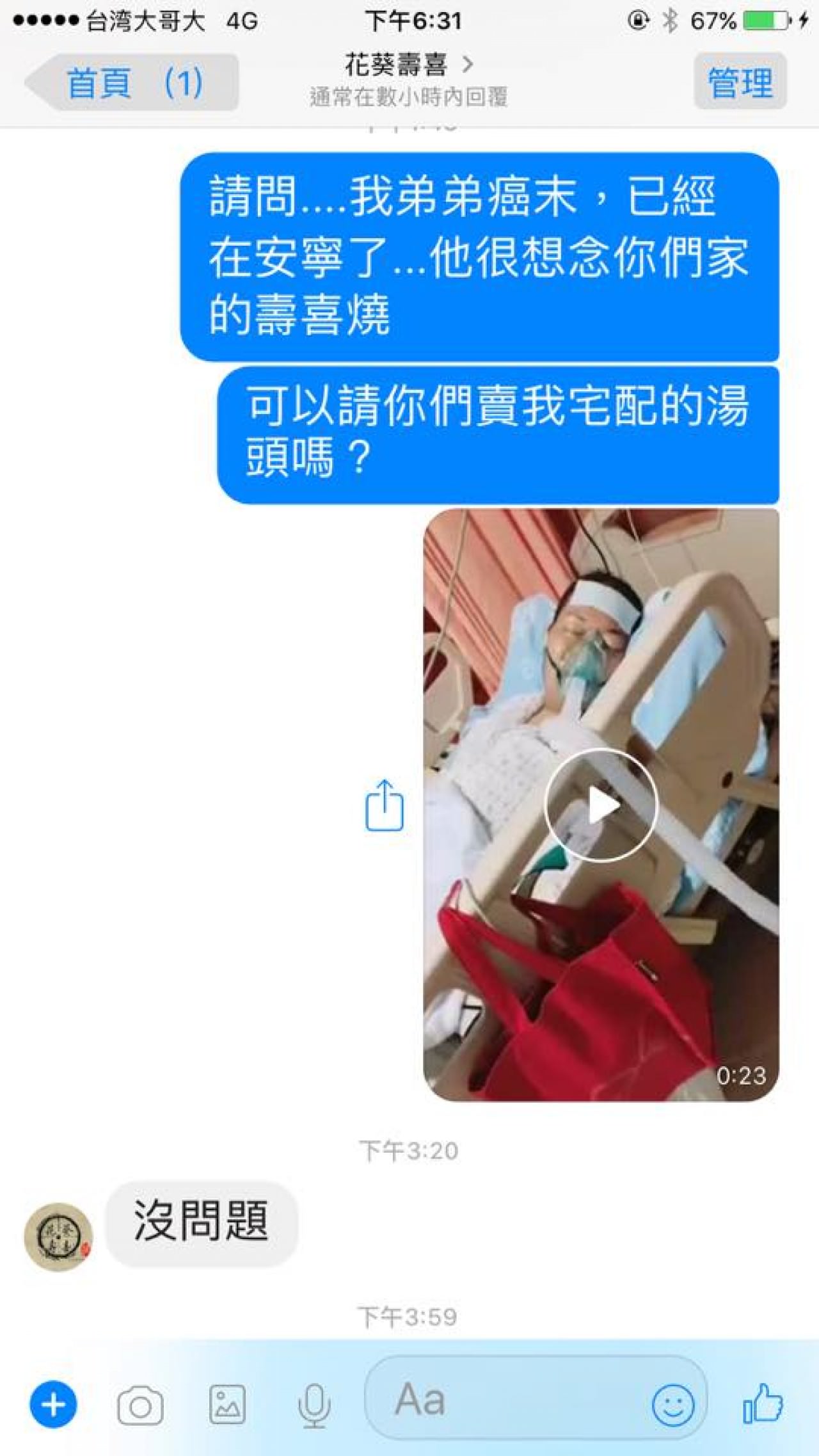 ▼楊姓網友的弟弟癌末重病,全家北上求醫。因為他特別懷念高雄某家壽喜燒店的味道,姊姊就詢問店家是否可以宅配,但店家很霸氣地表示,可以坐高鐵到台北送給他,而且完全不收錢,溫暖行徑感動所有人。