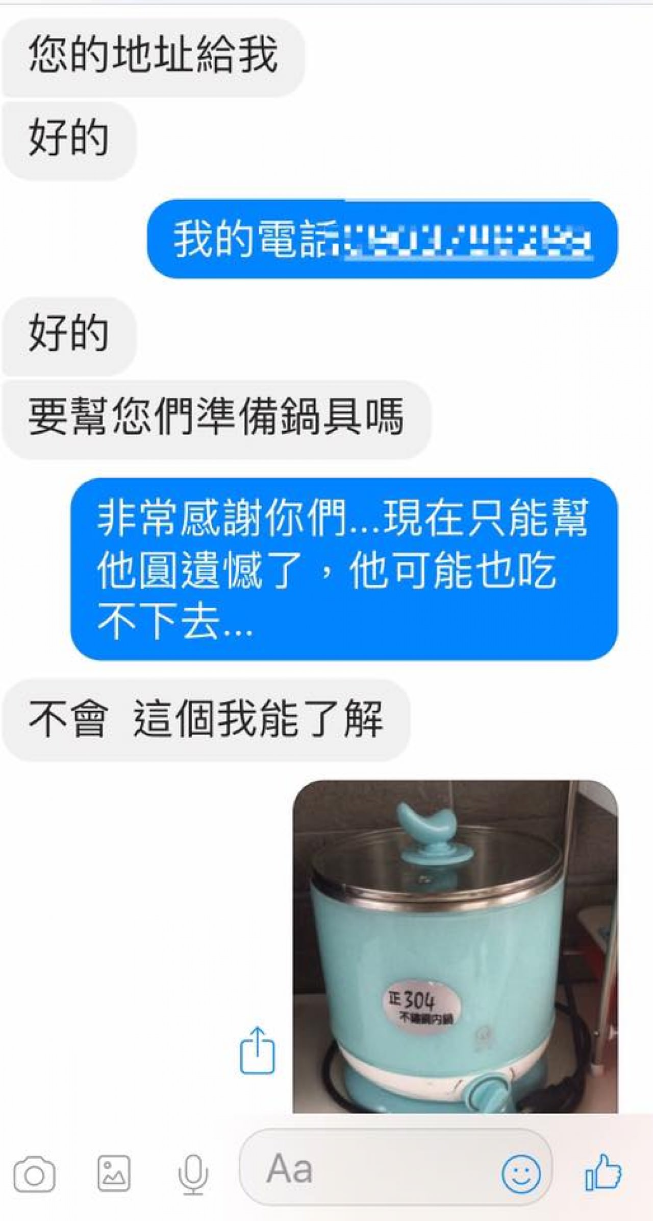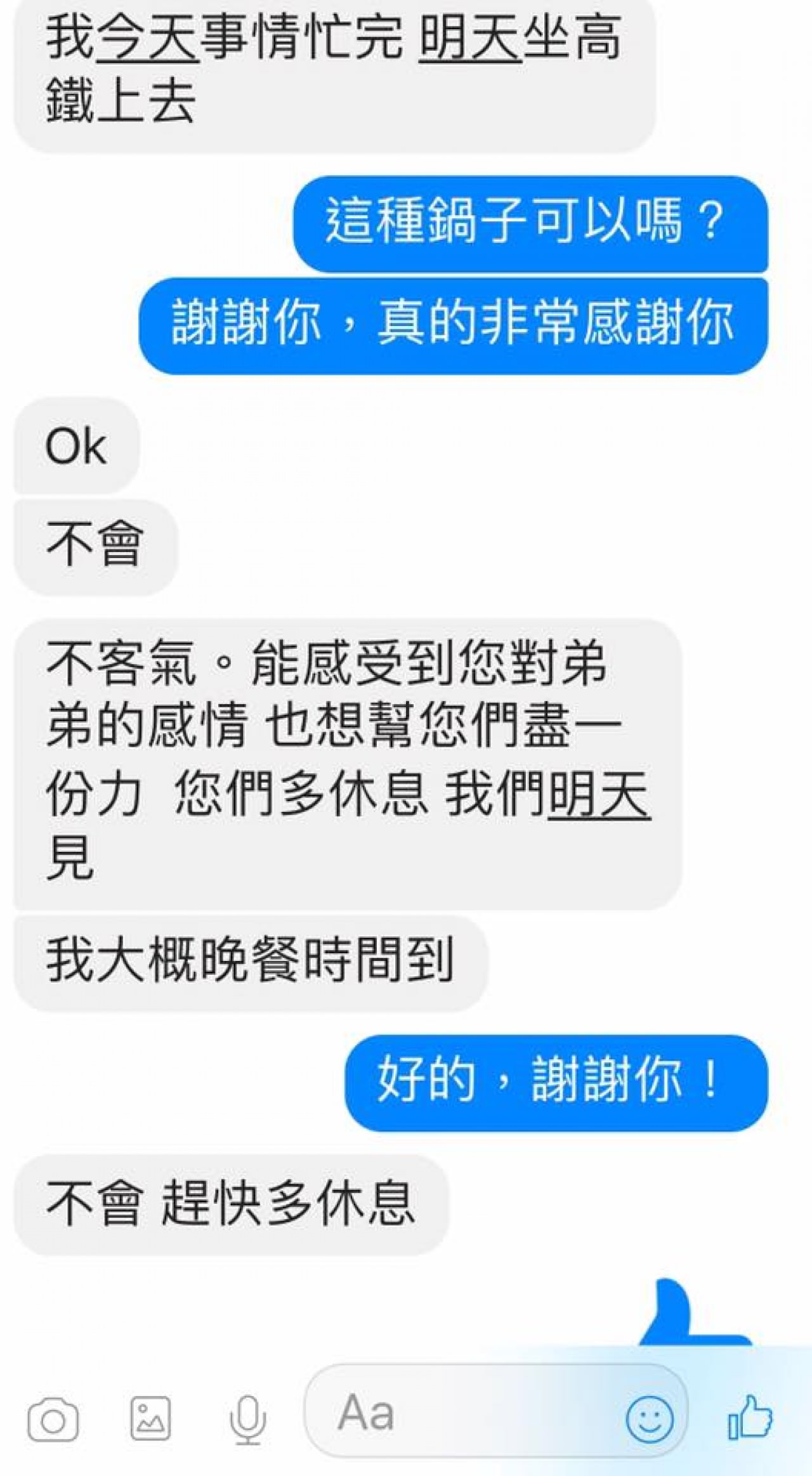 2017年10月27日上週,楊姓網友的弟弟Sam因為癌末即將離世,生前特別想念高雄一家壽喜燒的滋味,老闆知道後就霸氣搭高鐵北上,為他他最後的心願。如今Sam不幸辭世,楊姓網友決定把愛傳承下去,開放台大附近的房屋,讓北上求醫的民眾免費入住!
