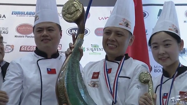 ▼世界麵包大賽每兩年舉行一次,這次在法國南特開賽,包括台灣、法國、日本、中國、德國、比利時、澳洲、西班牙等,共計有18個國家參賽,而代替台灣出征的是高雄「巴黎波波歐式麵包」主廚陳耀訓領軍的團隊。
