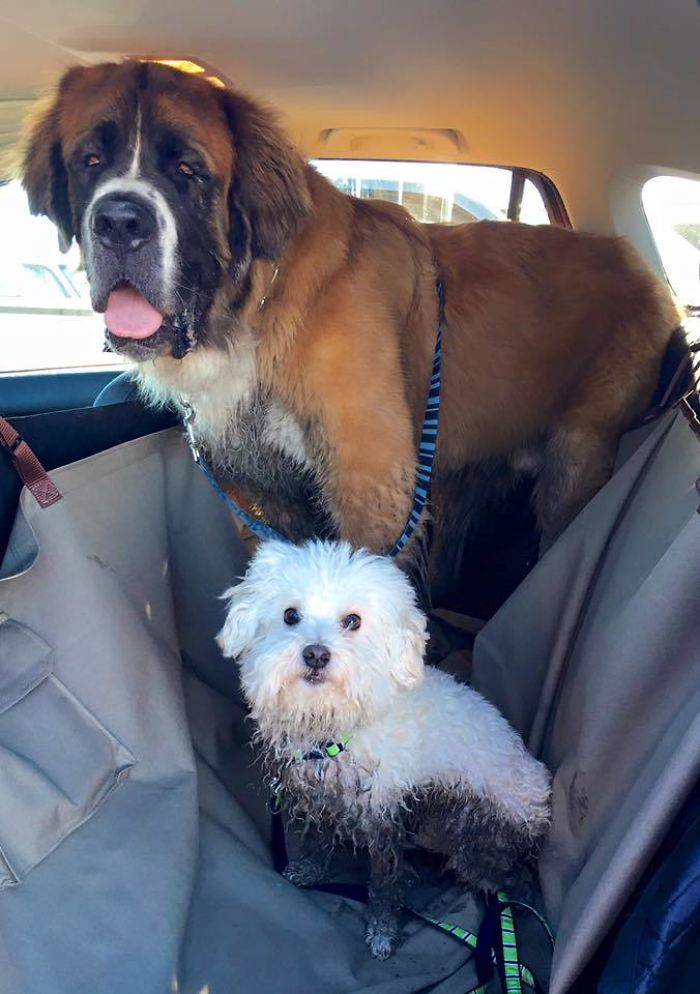 ▼被主人通知回家洗澡後的兩隻狗狗,右邊的狗狗似乎明白了什麼。