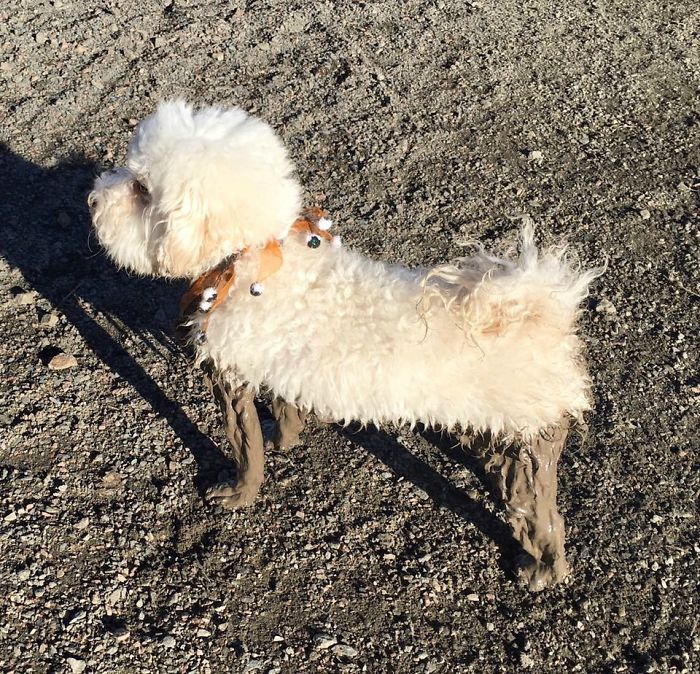 ▼遇上泥坑就毫不猶豫跳進去的汪星人,出來後就變成這樣。