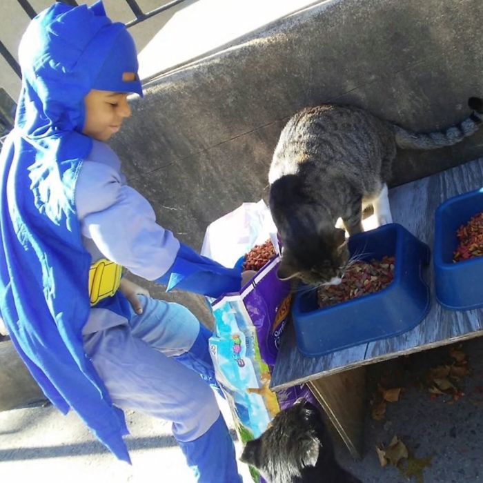 ▼網友們紛紛為這位5歲的小英雄點贊:「請告訴他他是這個世界上最棒的孩子」、「他是我見過最棒的英雄,讓貓咪們感到特別,英雄聯盟也要向他脫帽敬禮」、「我不確定我想成為他這樣的英雄還是他最好的朋友」、「真的嗎這是?這一切太不可思議了,他只有5歲」、「5歲的Shon穿著超級英雄的衣服去照顧流浪貓咪,是因為他那讓他覺得自己是貓咪的超級英雄」。