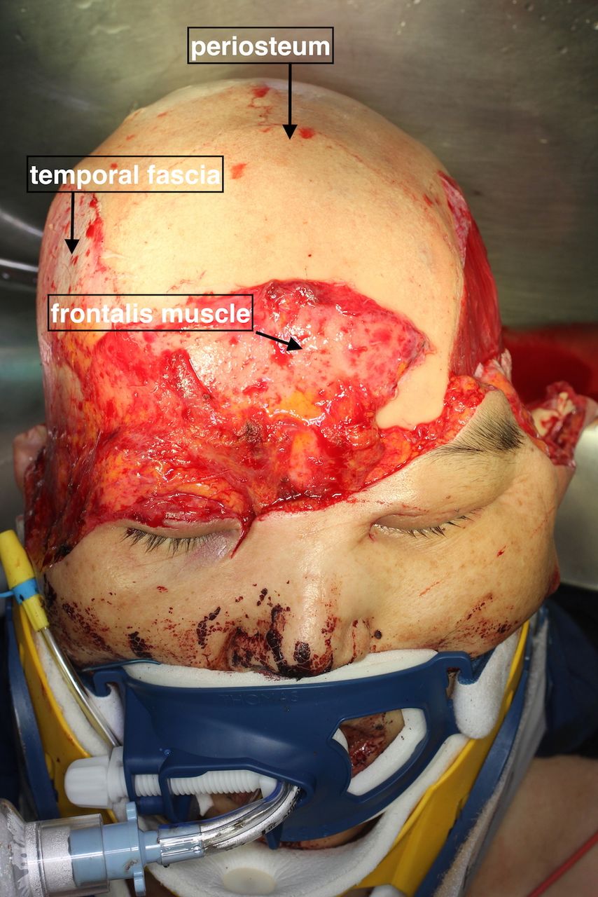 ▼女子的頭皮被扯掉後,醫生立刻安排手術,幫她把頭部左右的4根主要血管接回去。但她的左側血管傷得太重,血液不流通,所以這一邊的皮膚壞死,只能植皮,右側的血管沒有問題。