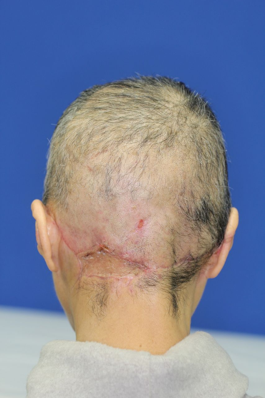 ▼通過植皮手術,女子的頭皮終於接駁回去,但她的神經已經徹底壞死,頭皮沒有知覺了。接駁頭皮手術難度很大,這是世界上第二宗成功的案例。
