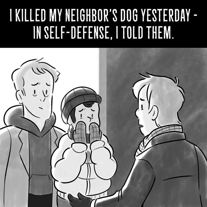 ▼「昨天我殺了我鄰居的狗,我告訴他們那是自我防衛。」