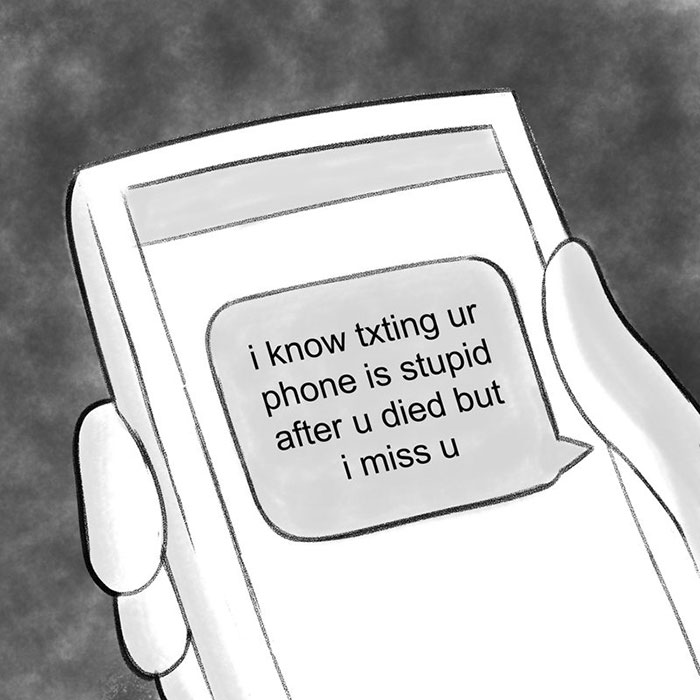 ▼「我知道在你死後傳簡訊給你是一件很愚蠢的事,可是我很想你。」