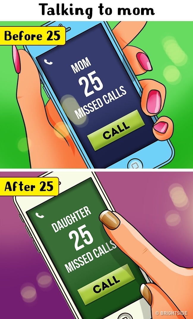 ▼25歲前不想接媽媽的電話;25歲後很想給媽媽打電話聊天,但媽媽不想理你。