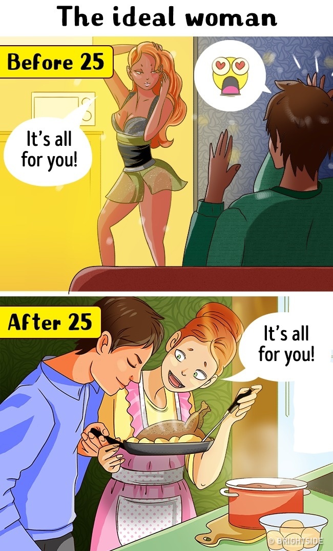 ▼25歲前的理想型女生要性感、火辣、會玩;25歲後的理想型女生要賢慧顧家。