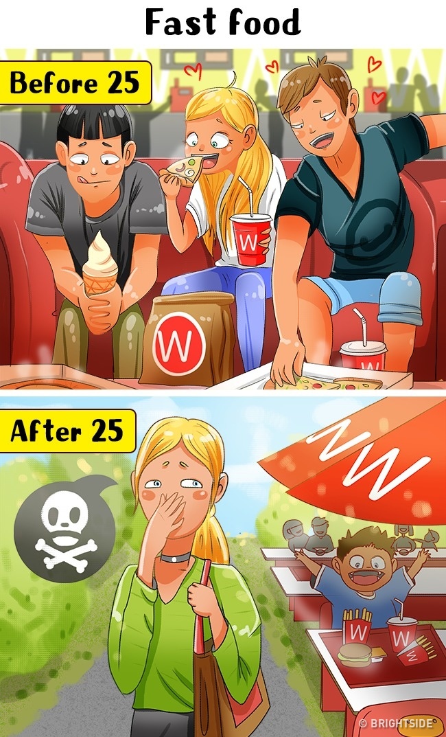 ▼25歲前盡情吃快餐,披薩、漢堡、可樂;25歲後盡量遠離那些東西,最好聞都不要聞。