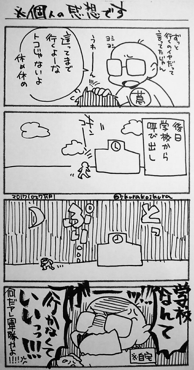 2017年11月01日如果各位有個8歲的小孩,在某天對你說自己因為學校壓力太大而不想上學時,各位會強迫他去上學,還是體諒他的心情呢?日本就有一位網友分享了自己小2女兒的真實事跡,讓許多網友都對這位網友開明的態度表示讚賞!
