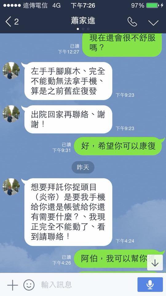 ▼在蔡章明答應幫忙之後,老蕭突然失聯,之後再度聯絡上時是老蕭的兒子用爸爸的電話回LINE表示:「我爸已經離開了」。不過蔡章明和其他群組內的寶友仍然決定幫助老蕭完成他的遺願,用他的手機抓到即將開放的「炎帝」。