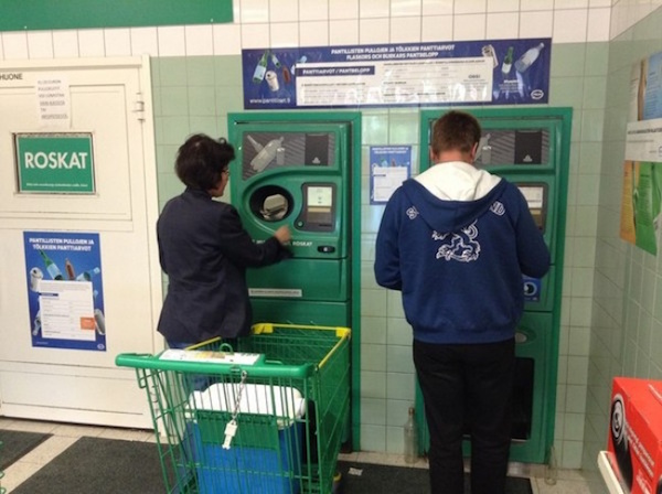 在赫爾辛基裡你不用倒垃圾,他們路邊設置有自動化的垃圾搜集桶,只要你按分類投入垃圾,垃圾就會被吸入管線內,以時速70公里送往垃圾集中站進行處理,所以你在路上幾乎不會聞到垃圾的臭味。當然他們也是有普通的垃圾桶,不過所有垃圾都是分類的。