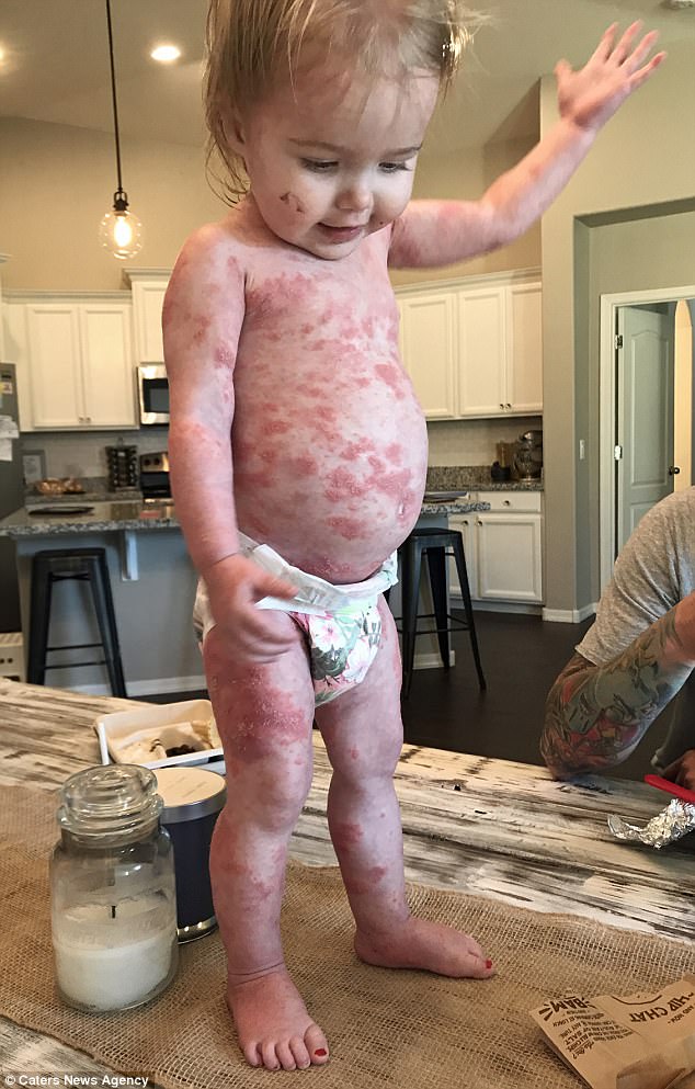▼莎莉在4個月大時就罹患乾癬,也是世界上年紀最小的乾癬患者之一。在治療前,艾希莉每天幫她洗澡都得花上2小時,不過漢娜寄給了他們自己的書後,現在莎莉狀況已經大幅改善,洗澡時間也縮短到20分鐘。
