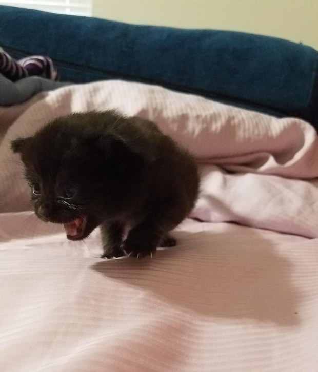 2017年11月07日一位網友在停車場發現了一隻大叫的小貓,聽起來就像是悲慘的哭聲,馬上好心把牠帶回家。但是小貓在家卻不肯吃飯,也不肯喝水,無奈只好求助對貓咪有救援經驗的朋友,結果在這位朋友的巧妙辦法下,小喵終於開始吃東西了。
