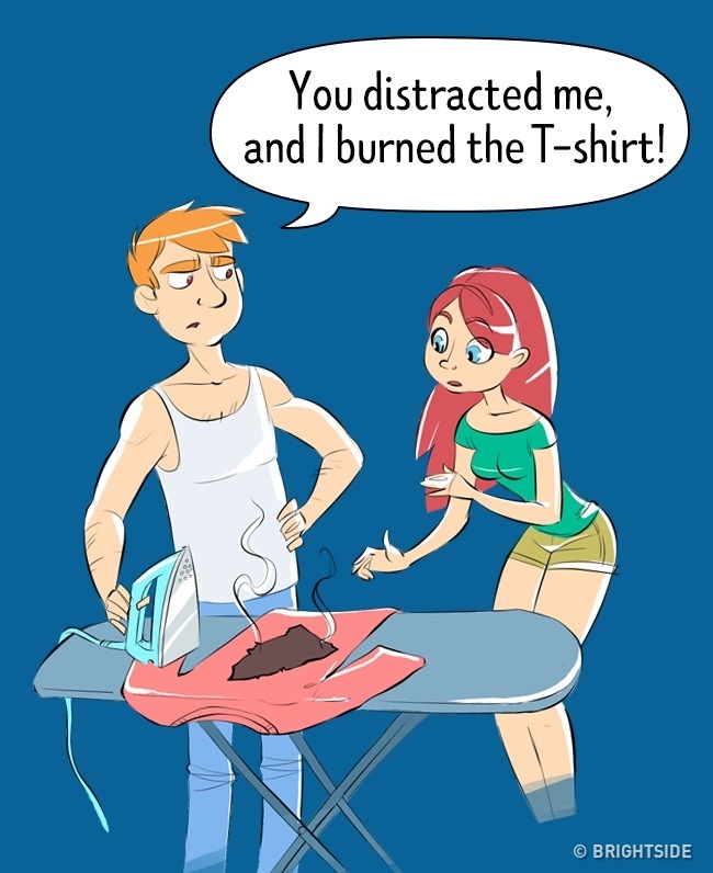 「都是你讓我分心,才害我把T恤燙壞了。」
