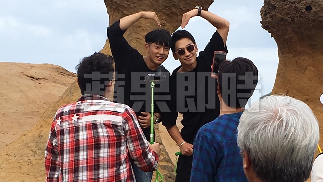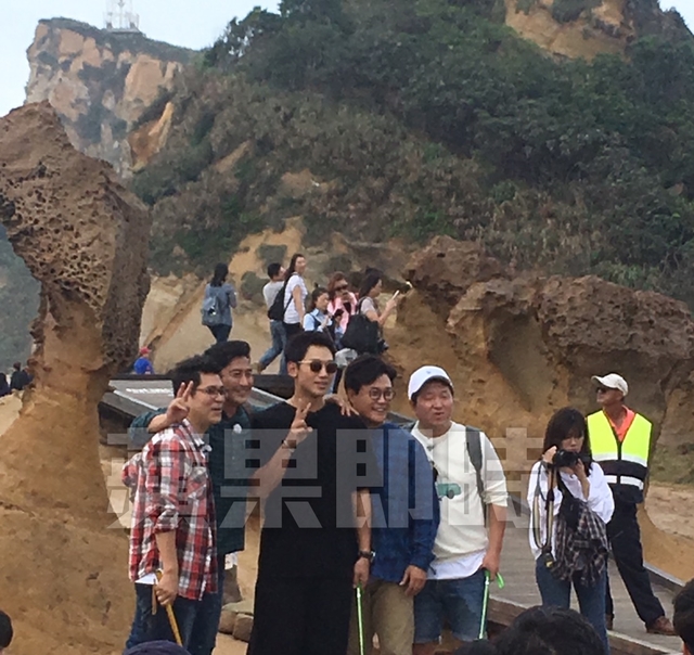 ▼一行人出了機場之後直奔野柳和九份,開始了節目的拍攝,一行人與女皇頭開心合照。