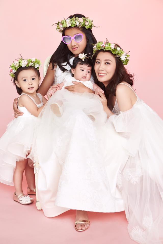 ▼賈靜雯經常在社群網站PO家庭照,前陣子一家人拍全家福,她與女兒們穿上雪白禮服,母女四人超高顏值讓人很羨慕。另一張照片中,修杰楷被心愛女子包圍著,笑得很燦爛。