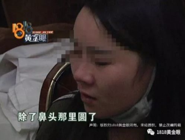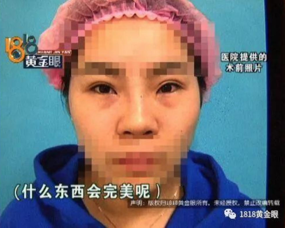 ▼今年10月,大陸一名20歲的張姓女孩到診所做隆鼻、開眼角手術。她表示「眼睛要像Angelababy,鼻子要像迪麗熱巴」。手術之前,診所滿口答應,保證說:「只要出錢都可以做到!」