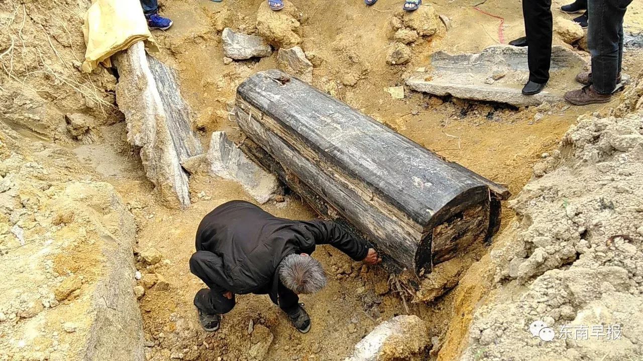 2017年11月10日前幾天,福建安溪龍涓梨山村的一戶王姓村民想要修一下自家門前的路,沒想到剛剛挖了一個小時,就發現一塊石灰板,下面則是一具棺材。