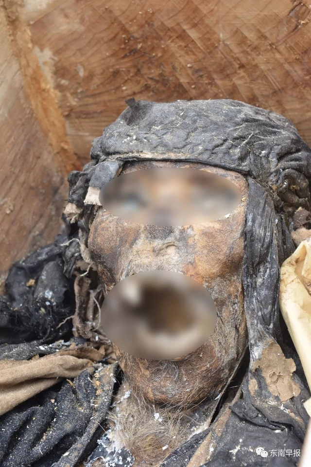 ▼棺材裡不是白骨,而是一具乾屍。乾屍戴著帽子,肉和衣服都沒有腐爛,還能看到白色的鬍鬚和眼窩的白肉。棺材裡沒有陪葬品,也無法判斷棺材中人的身份。王先生問了村里的老人,誰也不知道這個墓地的由來。