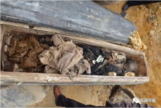 ▼他們懷疑這具乾屍有百年以上的歷史,可能是清代的墓葬,擔心有考古價值,就趕緊通報當地的文物部門。工作人員請工人們將棺材蓋好,因為現在古屍的年份還不好界定,需要等專家來到後再處理。