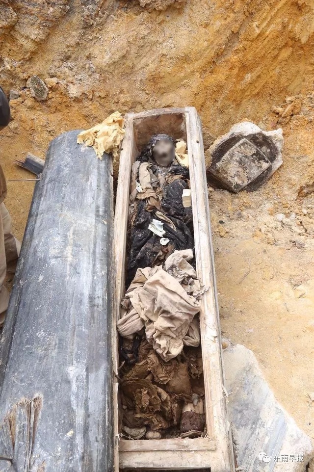 ▼屋主王先生表示,他們家的房子是20多年前建起來的,當時這裡沒有墓地。按照當地的習俗,動到別人的墓就要幫忙「撿骨」,所以王先生打算挖開墓葬,把白骨撿起來,另外找風水地安葬。可是棺材打開後,他和村民們都驚呆了。