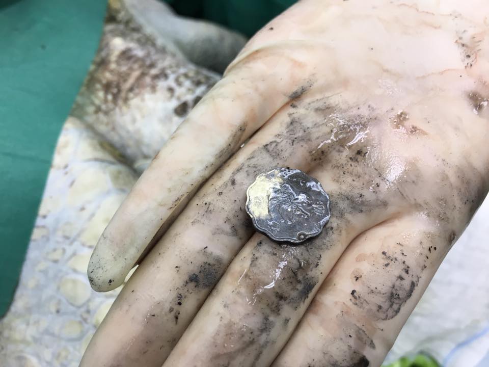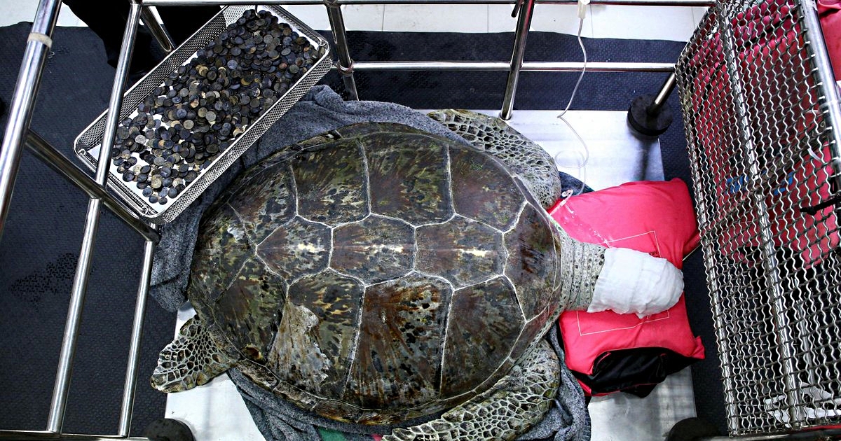 丟硬幣許願差點害死牠!25歲綠蠵龜的肚子滿滿都是硬幣,吞下915枚撐破肚皮險死!