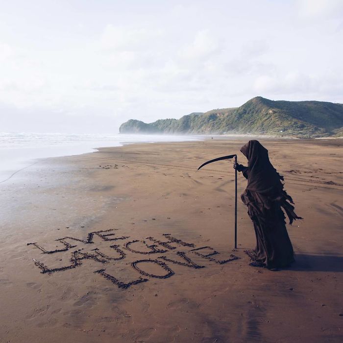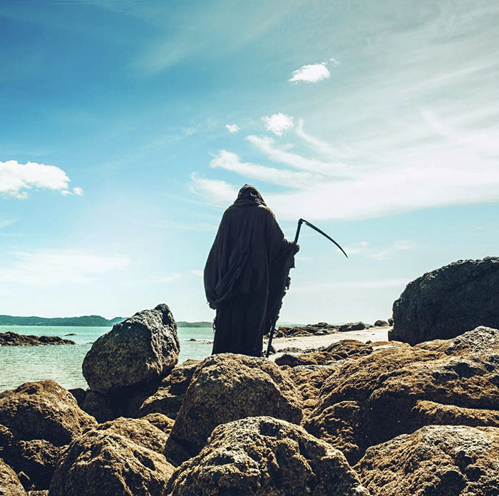 IG上死神「到海邊淘氣玩水」照片瘋傳,但網友看完才發現它的真實身份是…