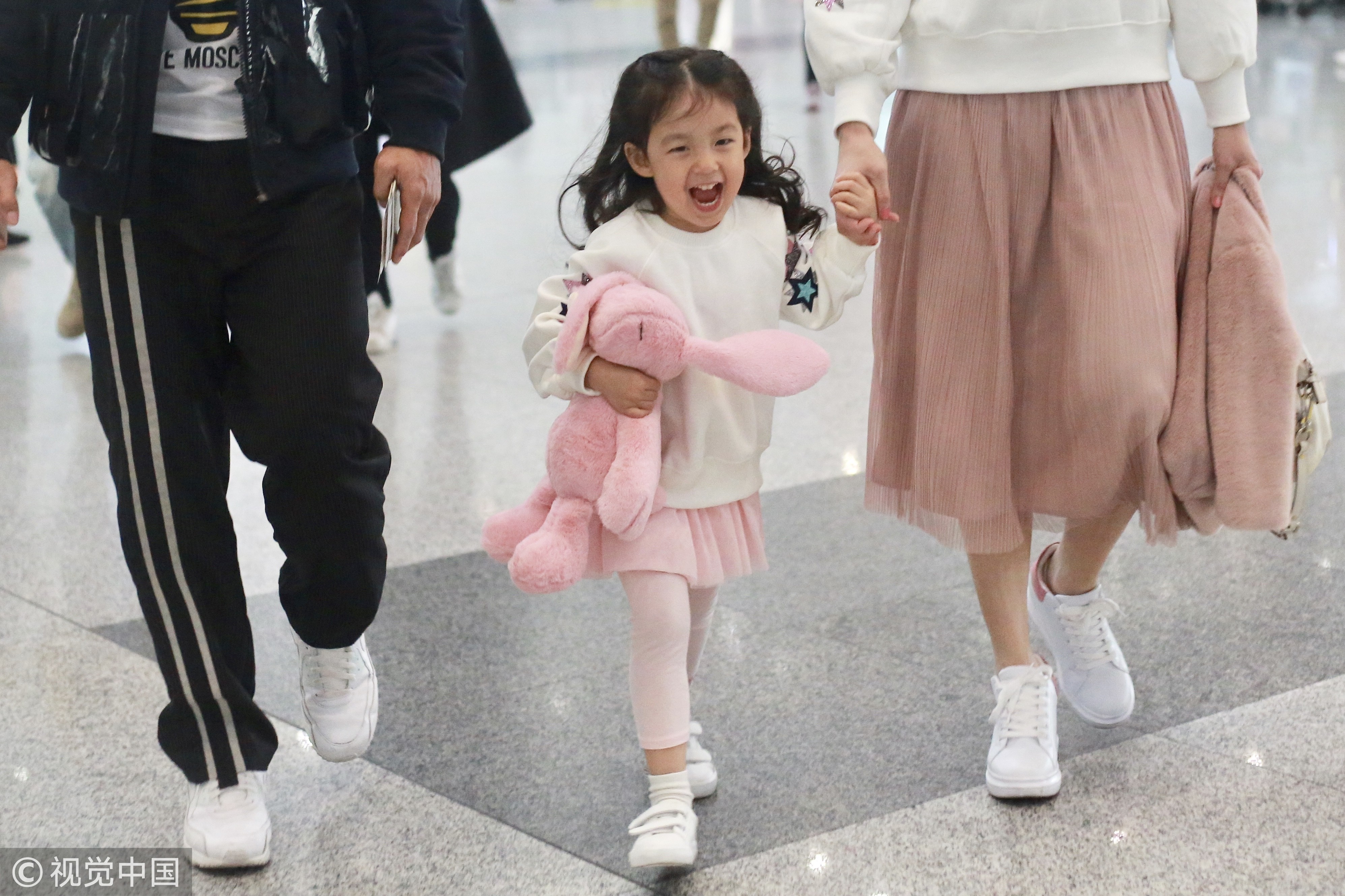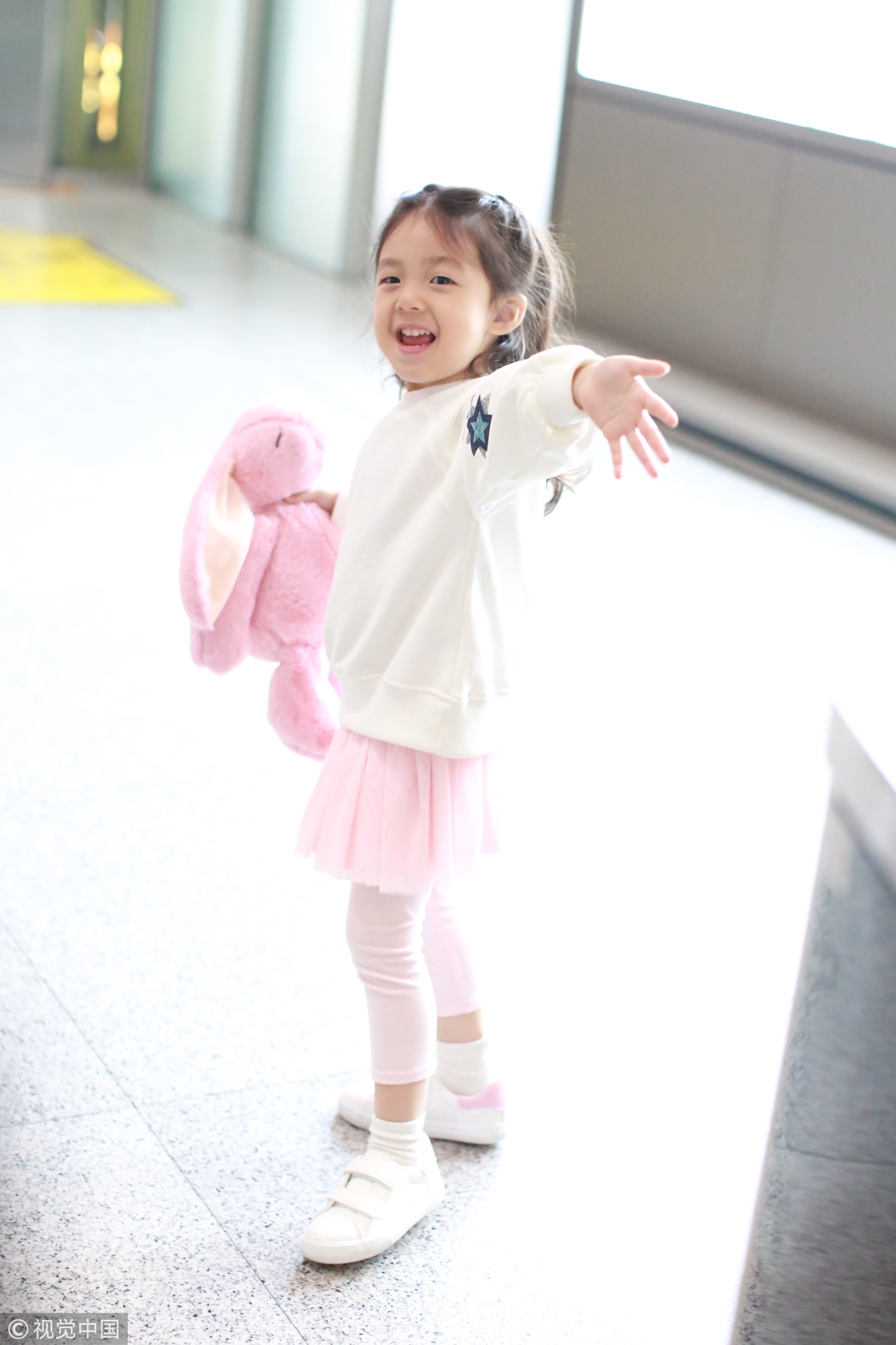 ▼小泡芙和爸媽最近被目擊現身北京機場,她跟王婉霏身穿母女裝,一席白上衣配上粉色短裙,手中還抱著粉紅兔娃娃,可愛度滿點!