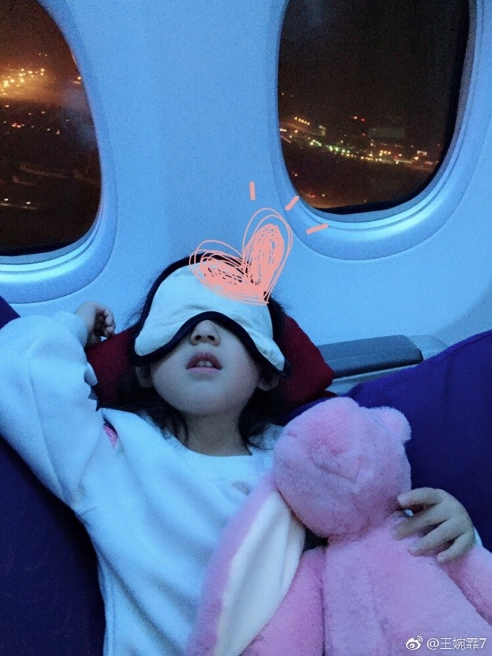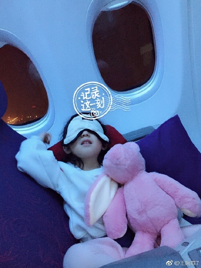 ▼王婉霏也拍了女兒上機後的睡覺照片,看起來睡得非常香甜,手邊還繼續抱著兔子娃娃。
