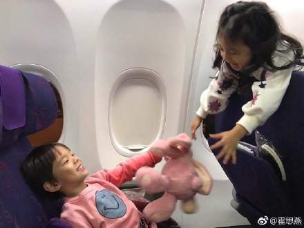 ▼嗯哼的媽媽霍思燕也在日前上傳了兩個小萌娃在機上的玩耍照,看得出來這些孩子在節目期間都培養出了好感情呢!
