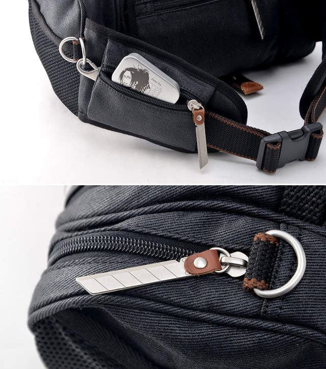 ▼所有的拉鏈都是刀刃的造型,但完全不用擔心割手,因為都不是真正的刀片!