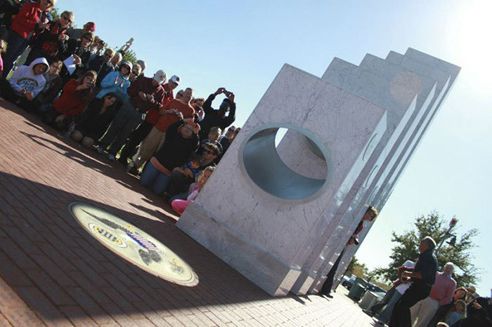 ▼AVM首席工程師Jim Martin設計這座紀念碑時,進行了大量的實地考察。他表示:「每年太陽經過的軸線都有微小的差異,我們使用了100年來太陽位移的平均值,並以此調整方向和高度,保證每年太陽經過這裡的正負差小於12秒。」
