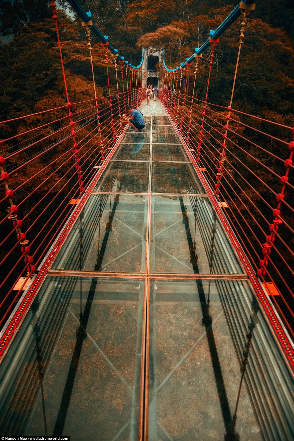 ▼這條「玻璃橋」吊掛在10層高的高度,讓遊客可以俯瞰50公尺以下的河床和各種美景。