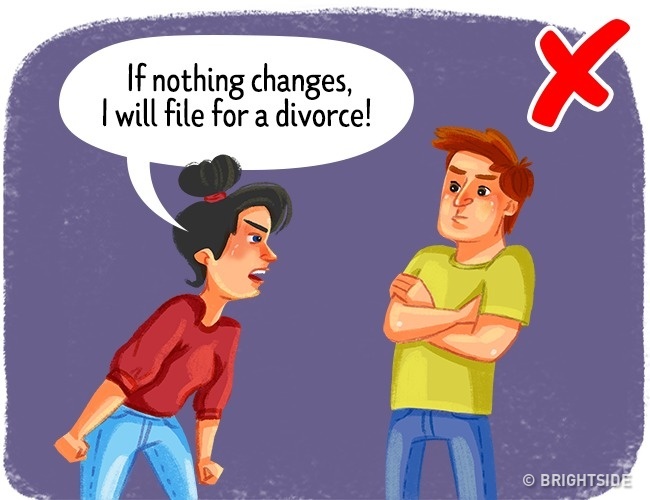 ▼不要說「離婚」:不要總是把離婚、分手掛在嘴邊,這樣的話不可能威脅到對方,總有一天對方會受不了,真的結束這段關係。