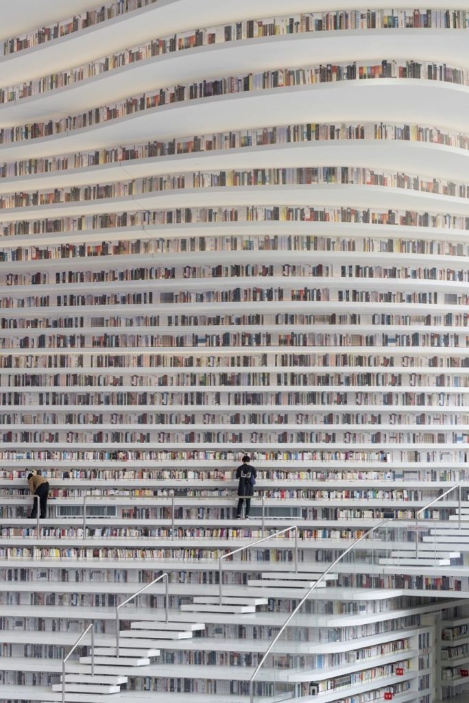 ▼圖書館中央是橢圓形的空間設計,還運用了波蘭線條,展現了「書山有路」、「天井」等中國文化元素,看起來很前衛。